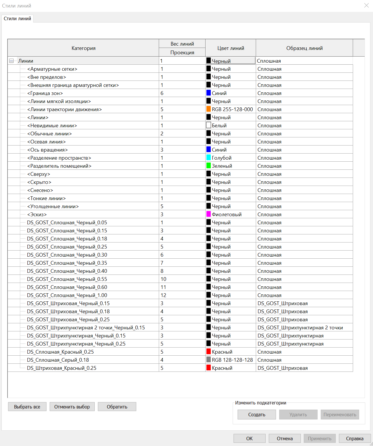 - Пользовательские стили линий (с префиксом DS_GOST и DS_).