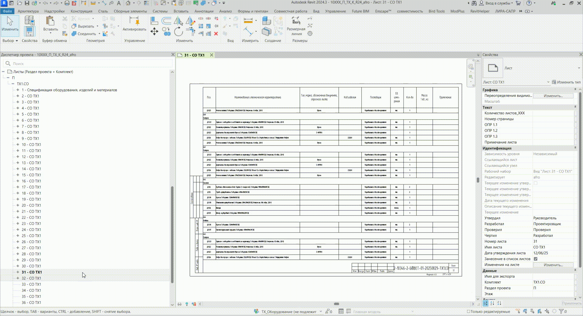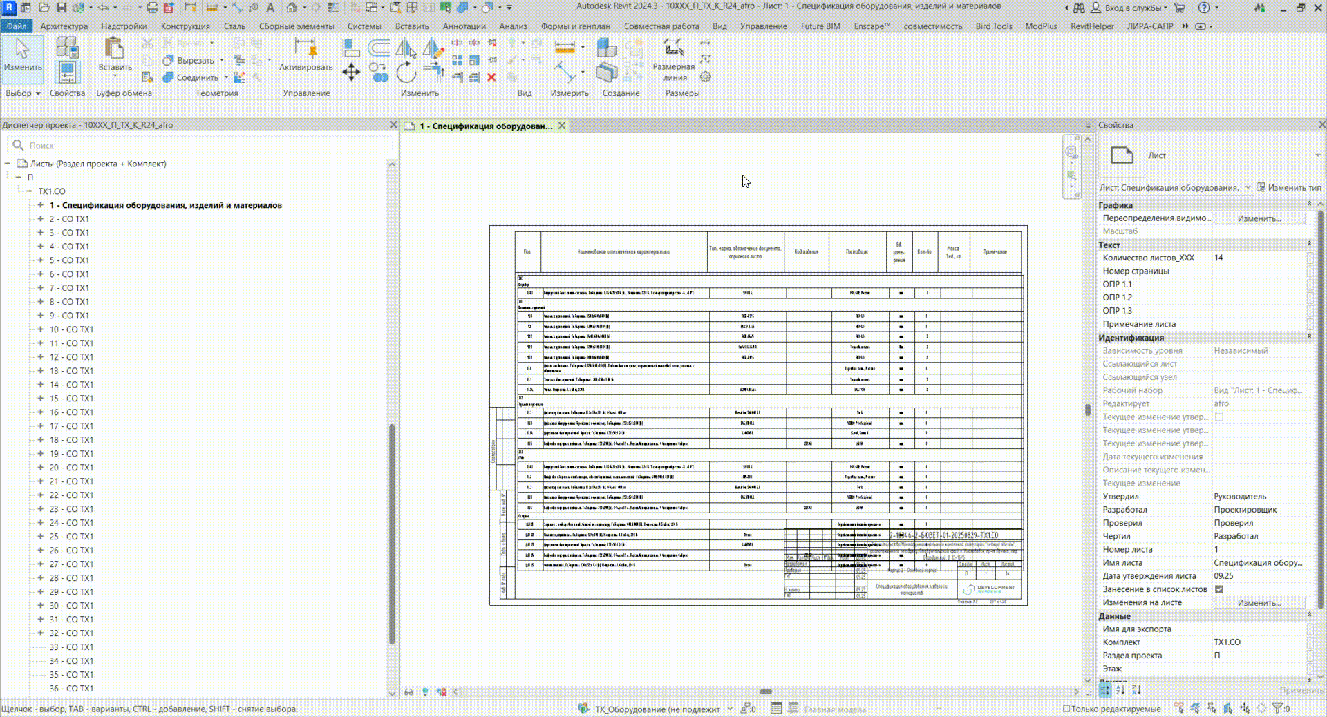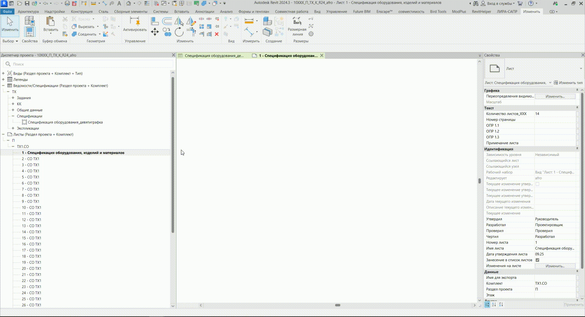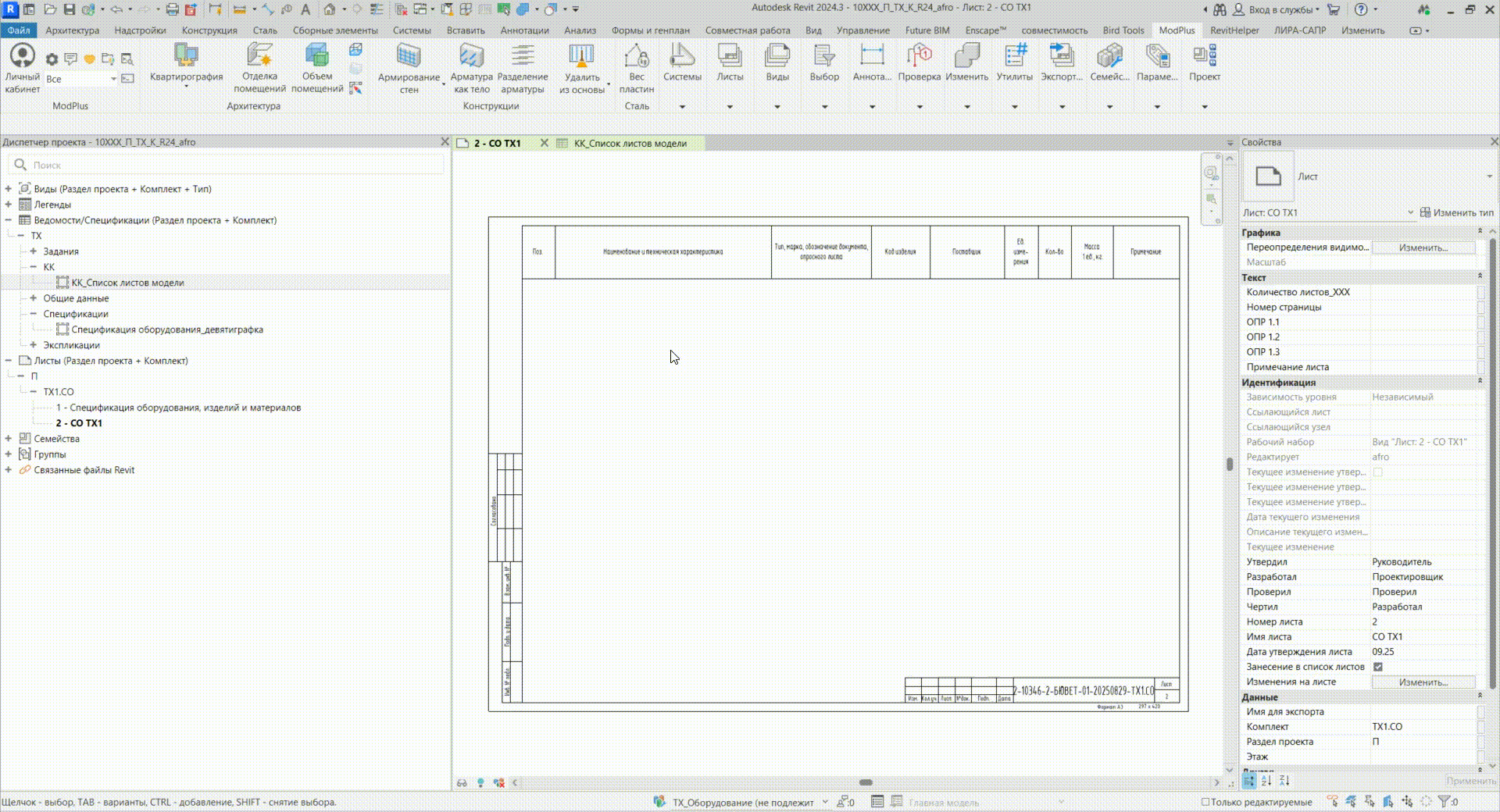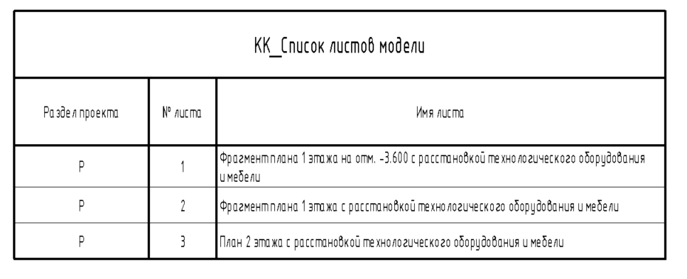 ⠀• Перейдите в спецификацию «КК_Список листов модели»;