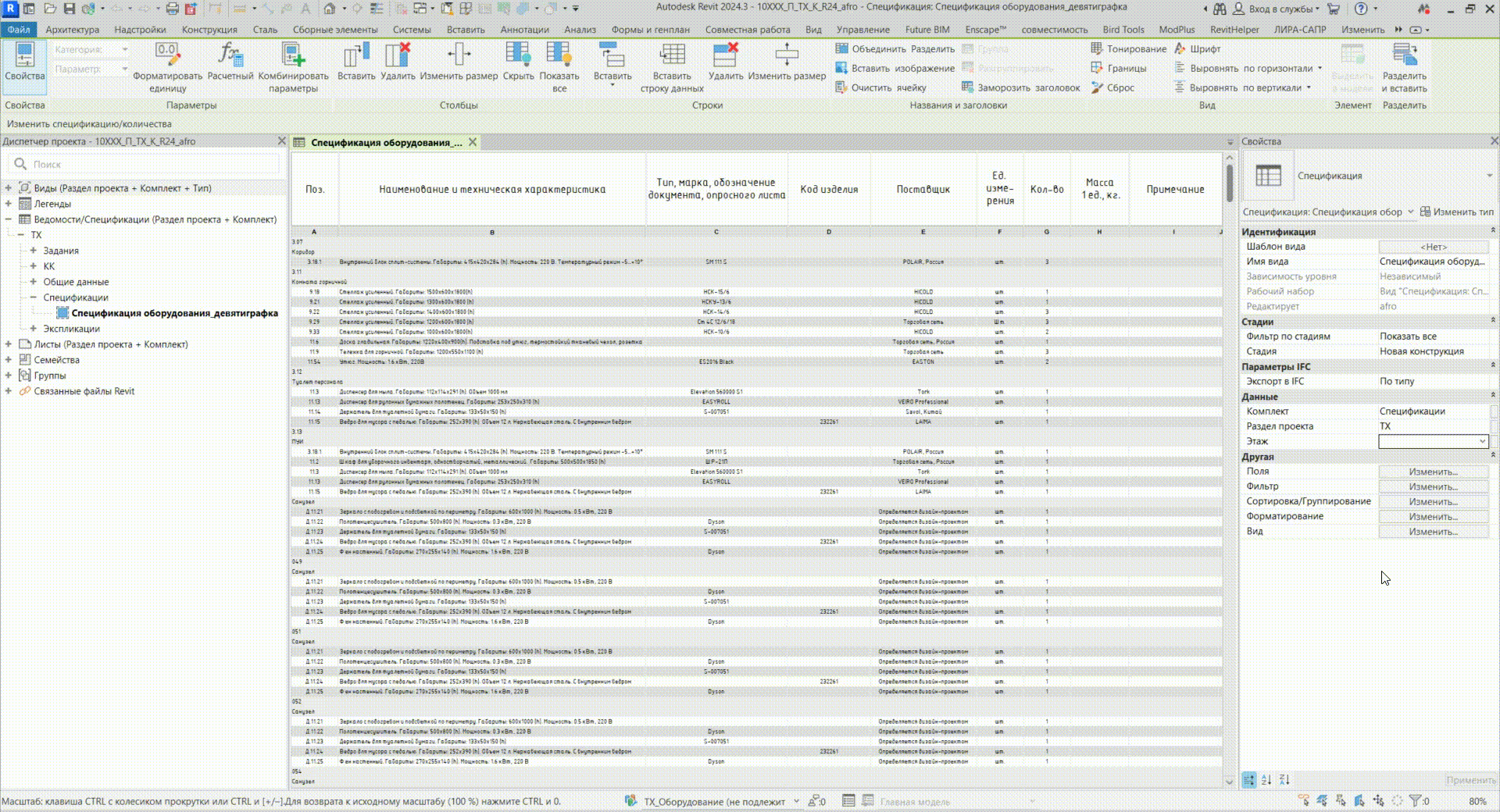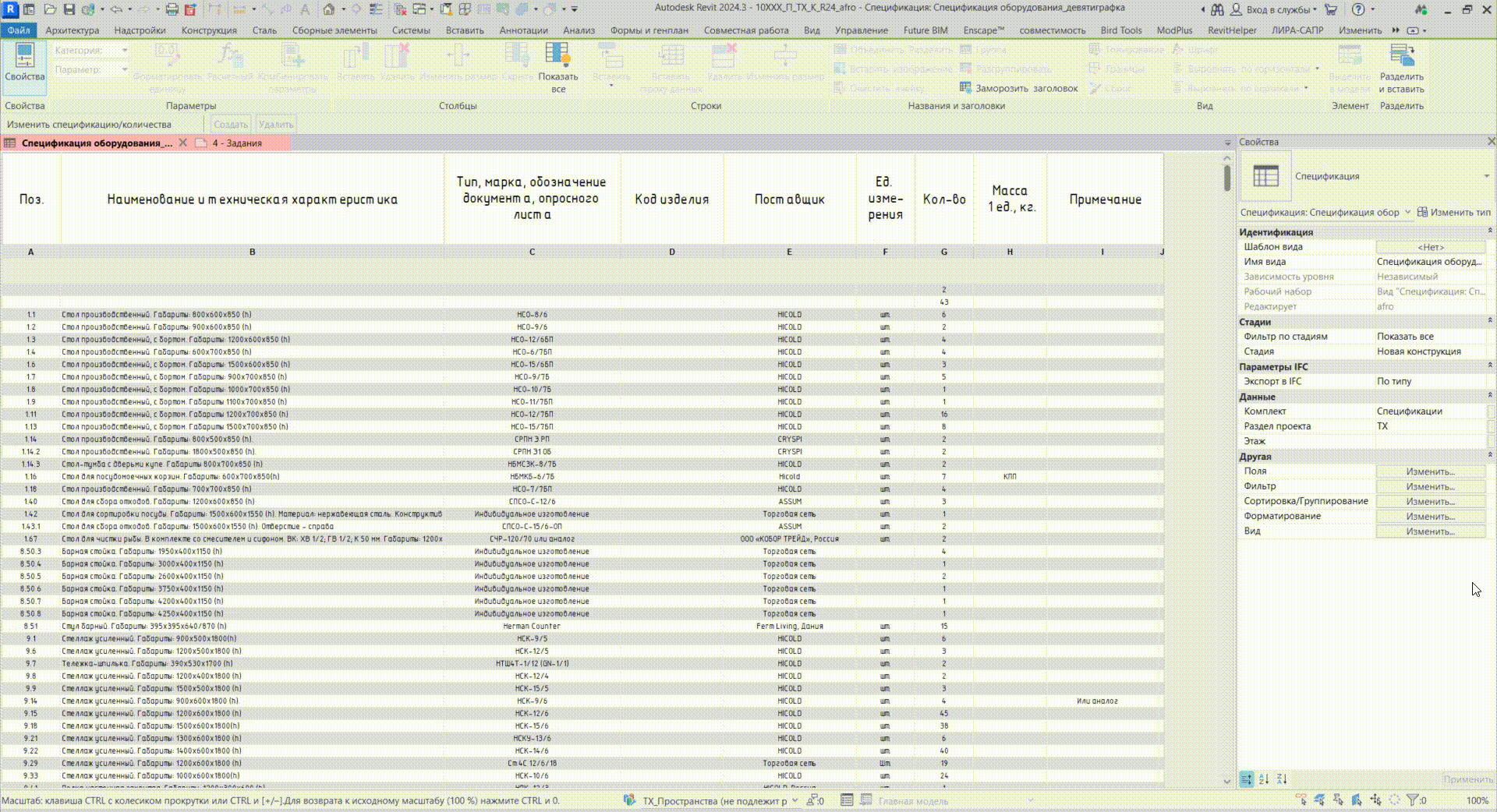 - Откройте спецификацию, в которой требуется фильтрация (например, «Спецификация оборудования_девятиграфка»);