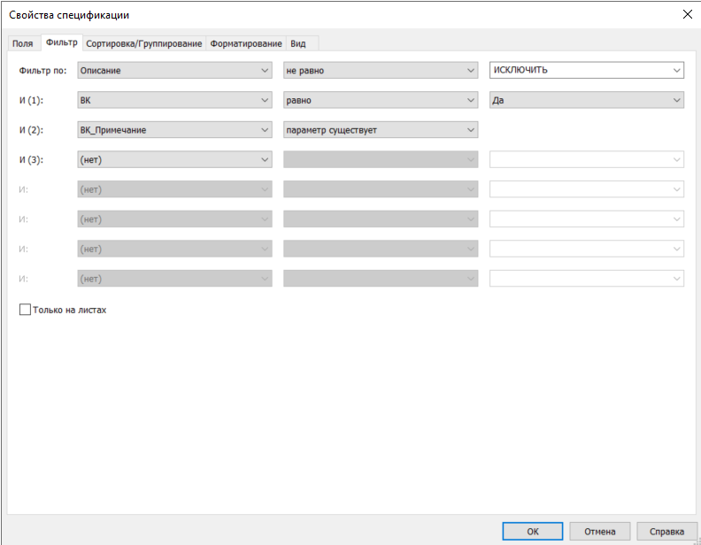 - Проверочная спецификация листов — проверка заполненности параметров у листов;