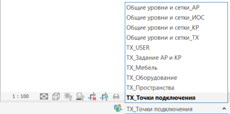 2. Установите рабочий набор на «ТХ_Точки подключения»;