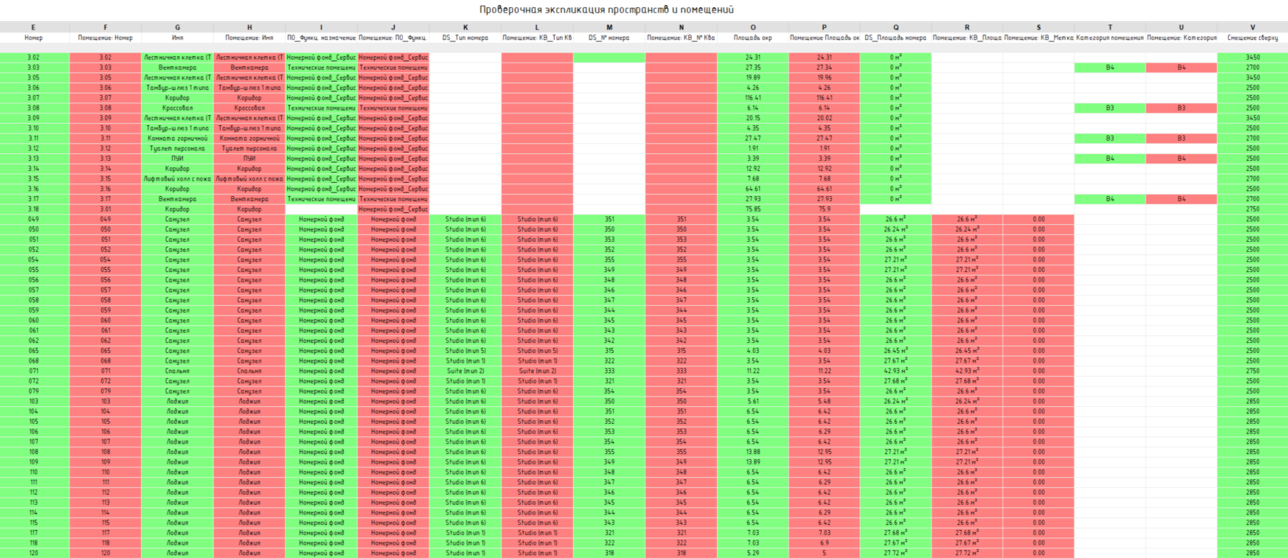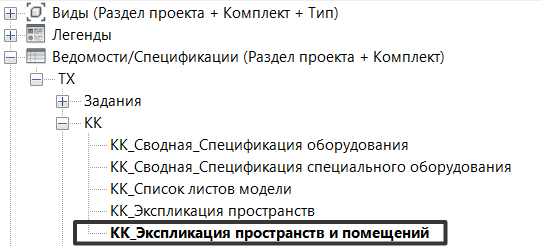 - Проверочная спецификация «КК_Экспликация пространств и помещений»