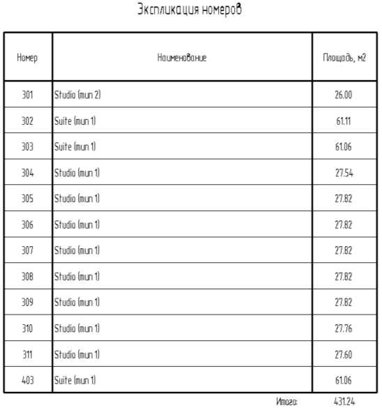 3. Спецификация для номерного фонда «Экспликация номеров»