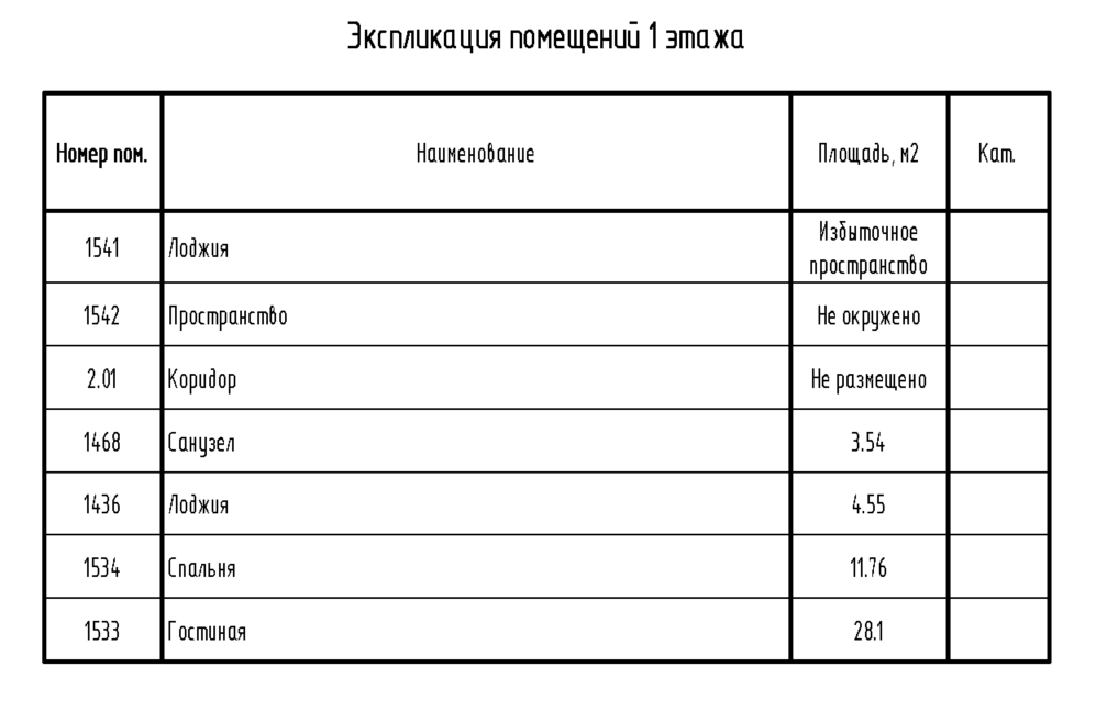 Если в экспликации в графе «Площадь» отображаются корректные значения — означает, что пространство создано правильно и имеет замкнутый контур.