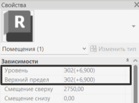 - У помещения из АР посмотреть значение параметра «Смещение сверху»;