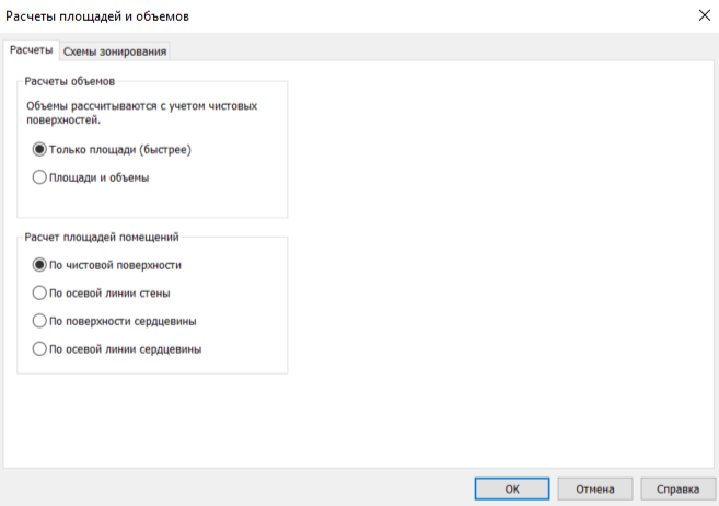 3. Запрещено изменять настройки «Расчеты площадей и объемов» — они должны соответствовать параметрам, указанным на скриншоте ниже.