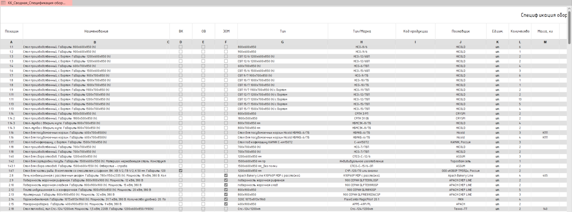 Рисунок 4.2.7.4.3 – Спецификация «КК_Сводная_Спецификация оборудования»
