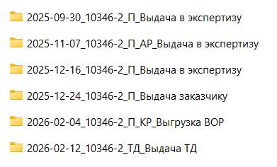 - папка «_архив», где хранятся все предыдущие выданные для согласования версии ВЕР в формате DOCX.