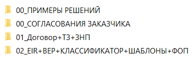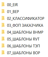 Рисунок 3.1.3.3 – Внутренняя структура папки «02_EIR+BEP+КЛАССИФИКАТОР+ШАБЛОНЫ+ФОП»