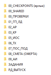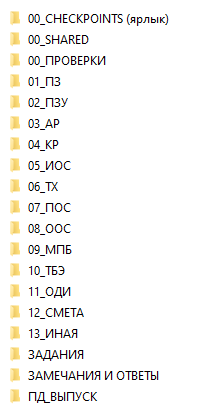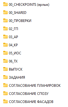 Структура в папках АР, КР, ТХ и ГП не регламентируется.