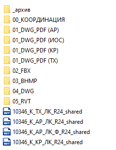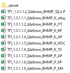 - папка «_архив», где хранятся все предыдущие выданные для согласования версии ВЕР в формате DOCX.