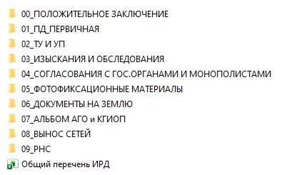 В теле папки также находится справочная информация для PM по общему перечню исходных данных, согласование которых необходимо с госорганами.
