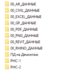 - 01_РАБОЧИЕ ФАЙЛЫ. Основная рабочая папка проекта. Предназначена для хранения и работы над внутренними файлами проекта раздела ПЗУ. Запрещается брать, копировать, вырезать, удалять, просматривать и проводить работы над файлами в данной папке! Если нужны данные, необходимо обратиться к проектировщику раздела ПЗУ, чтобы вам направили ссылку на нужные файлы;
