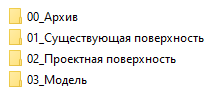 - 01_Существующая поверхность – расположены файлы для передачи BPM объёмной поверхности по геодезическим изысканиям;
