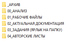 - папка «WIP», где хранятся файлы со статусом «в работе» (например, редактируемая версия ВЕР).