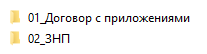В папку «01_Договор с приложениями» выкладываются тело договора, все приложения к договору, а также все ИД, на которые есть ссылка в приложениях.