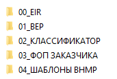 В данной папке размещаются: EIR, BEP, классификатор, шаблоны ВНМР, ФОП Заказчика.