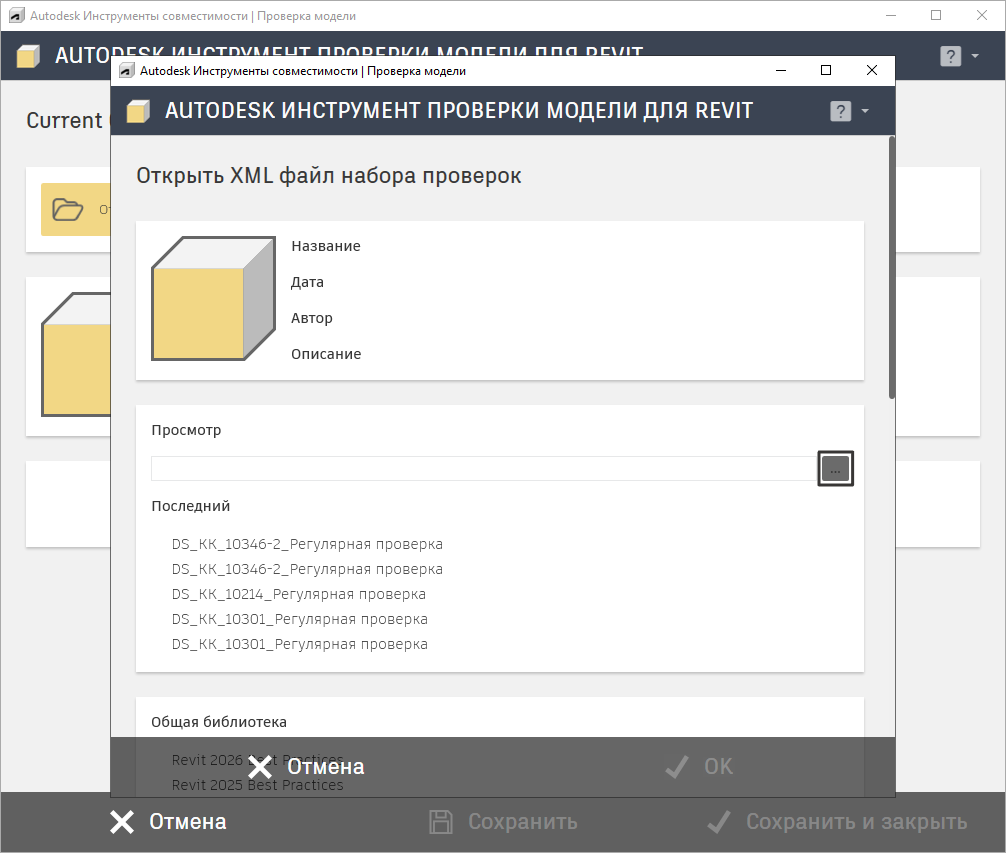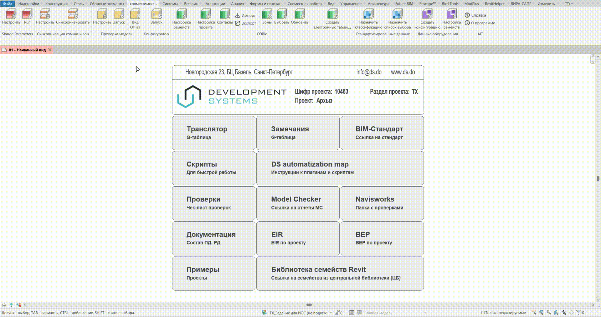 Model Checker — инструмент для проверки заполненности обязательных параметров элементов модели. Доступен на вкладке «совместимость»
