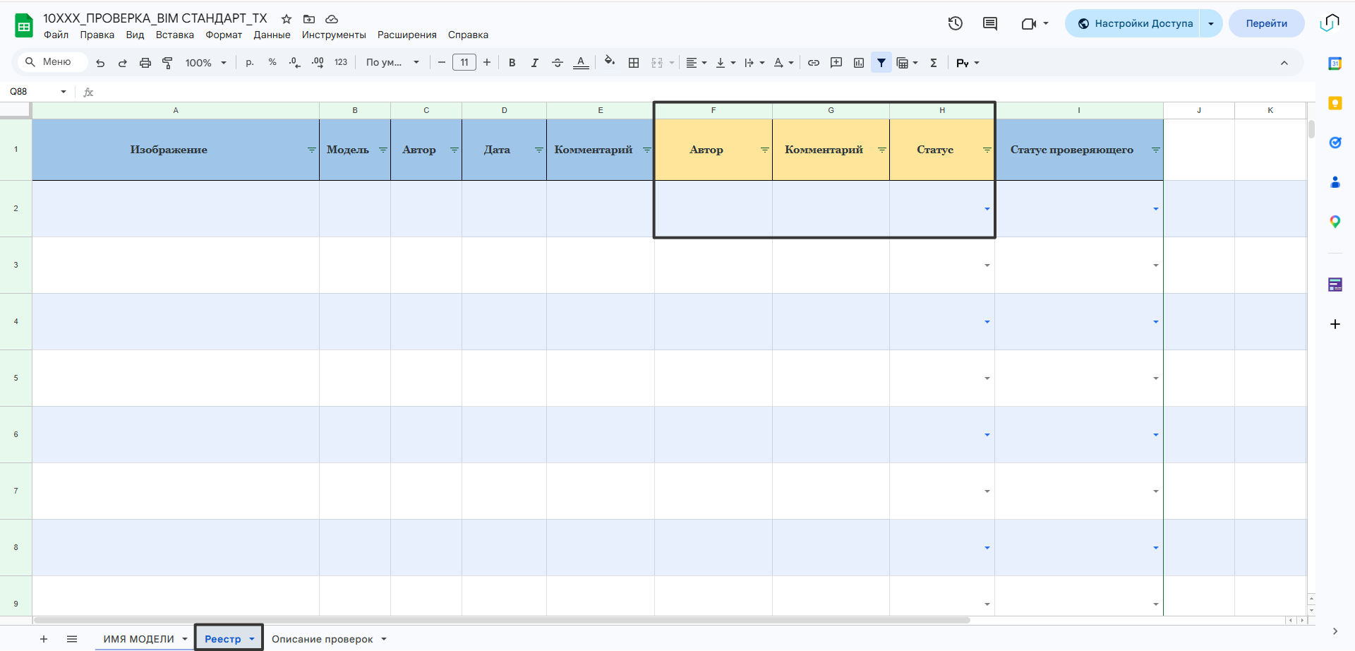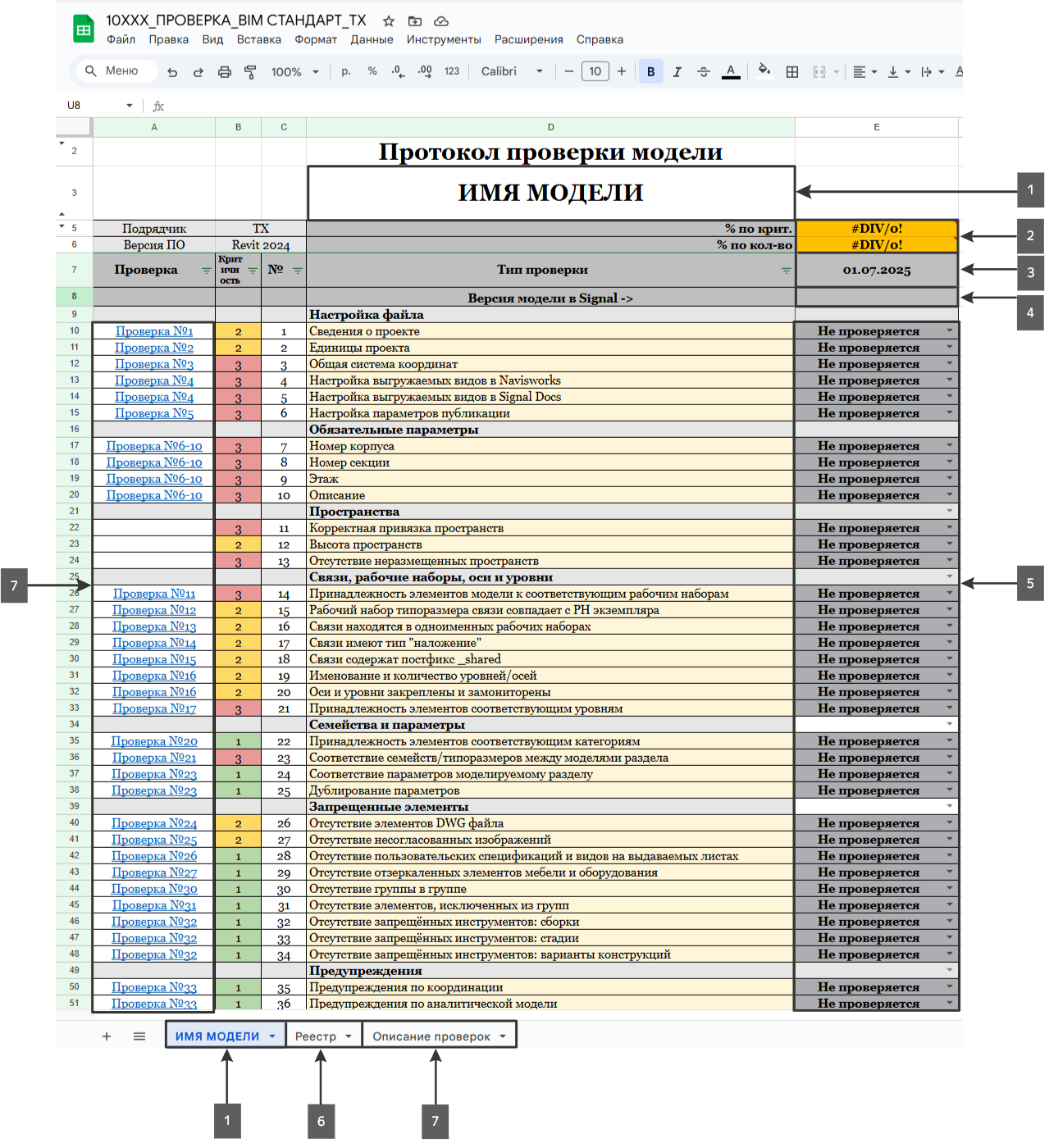 - Формирование «Протокола проверки модели» на основе шаблонного чек-листа (далее по тексту «отчет»). Ответственный BM-Tech;