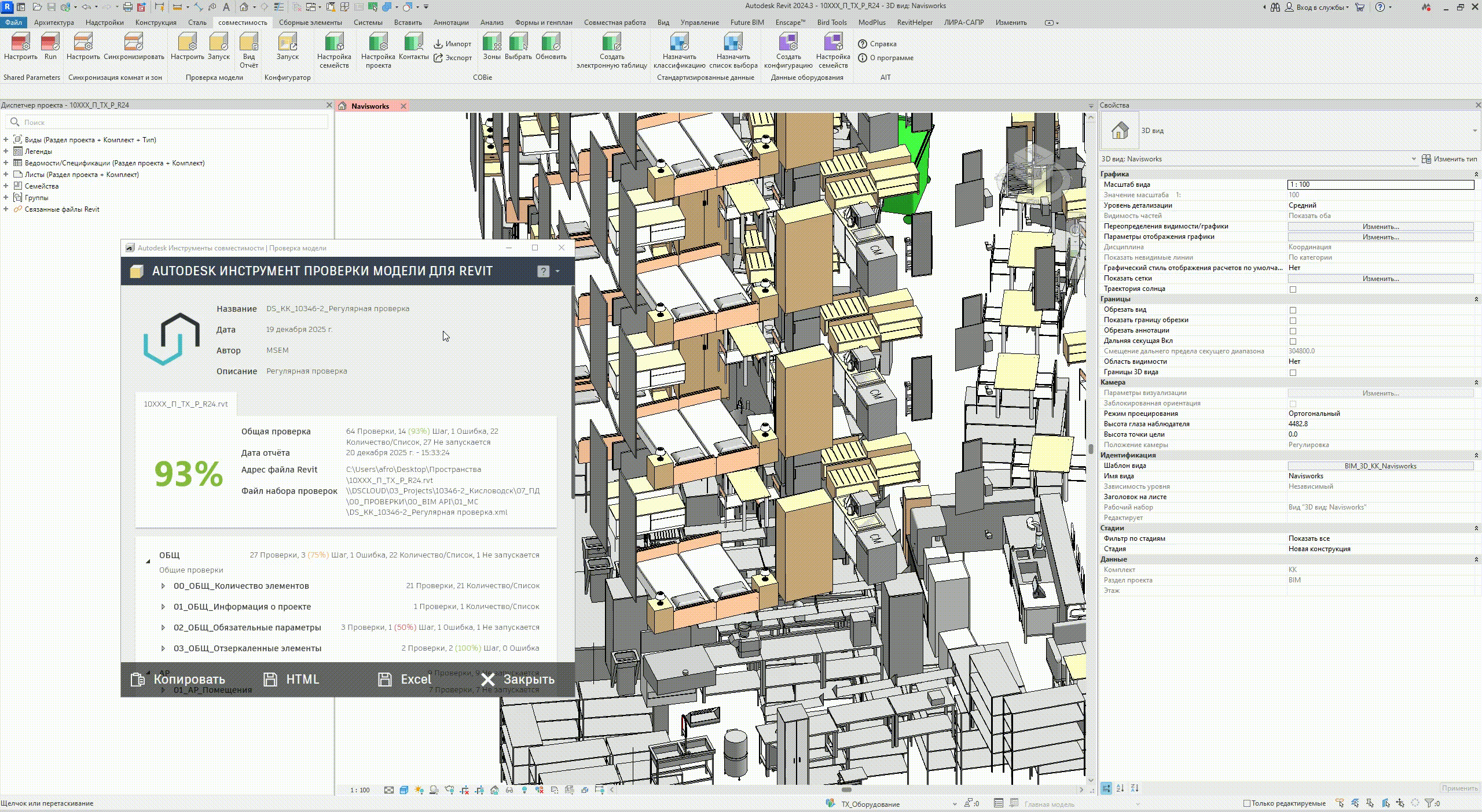 BM‑Tech формирует файлы проверки на коллизии Navisworks и выгружает отчет.
