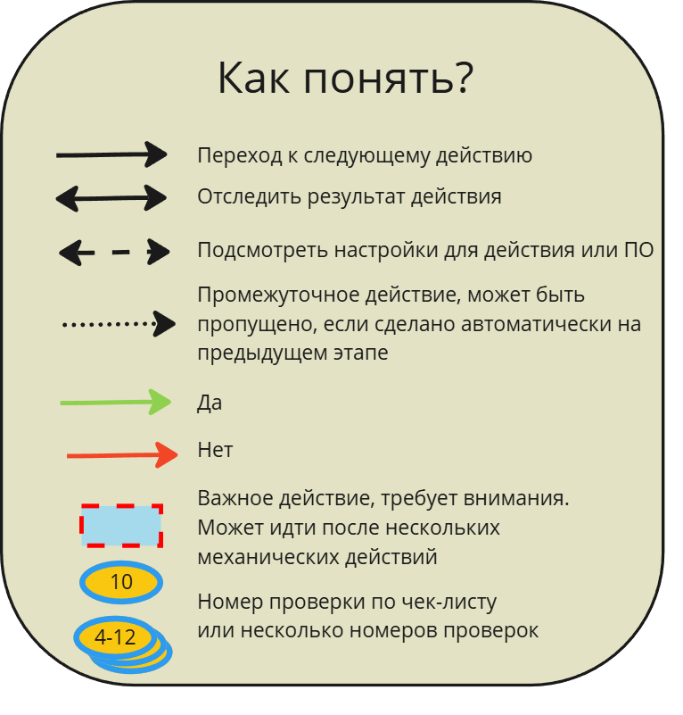 Важно: следовать блок-схеме и двигаться сверху вниз поэтапно при проверке. Слева от блок-схемы даны подсказки.