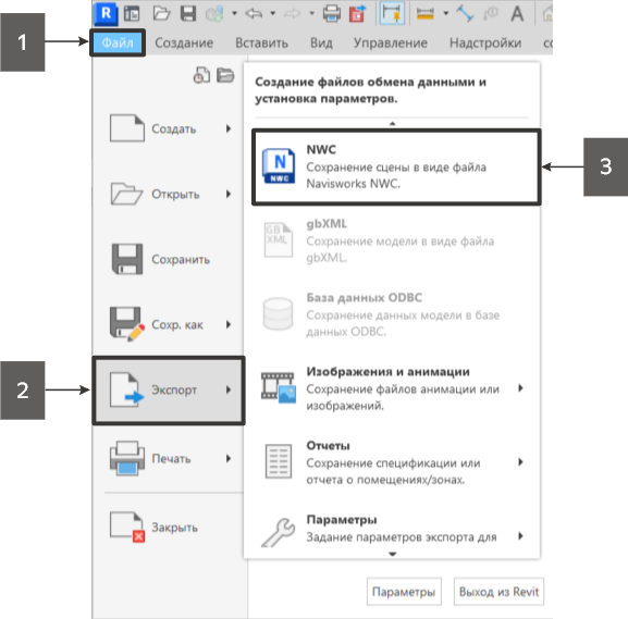 Видео 4.3.1.1.12 – Экспорт файлов NWC из Revit